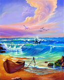 «Лодка на песчаном берегу у моря»